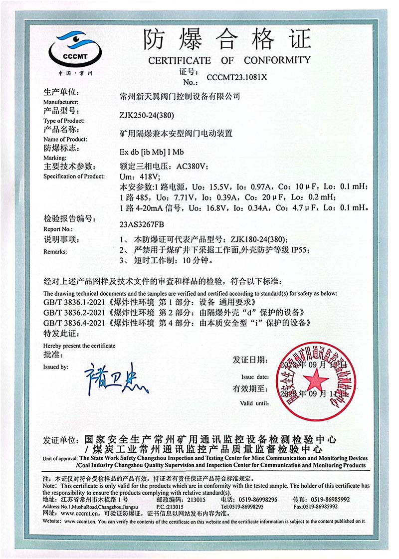 防爆Z10B Z10FB國(guó)家強(qiáng)制性產(chǎn)品認(rèn)證CT4證書(shū)109.2